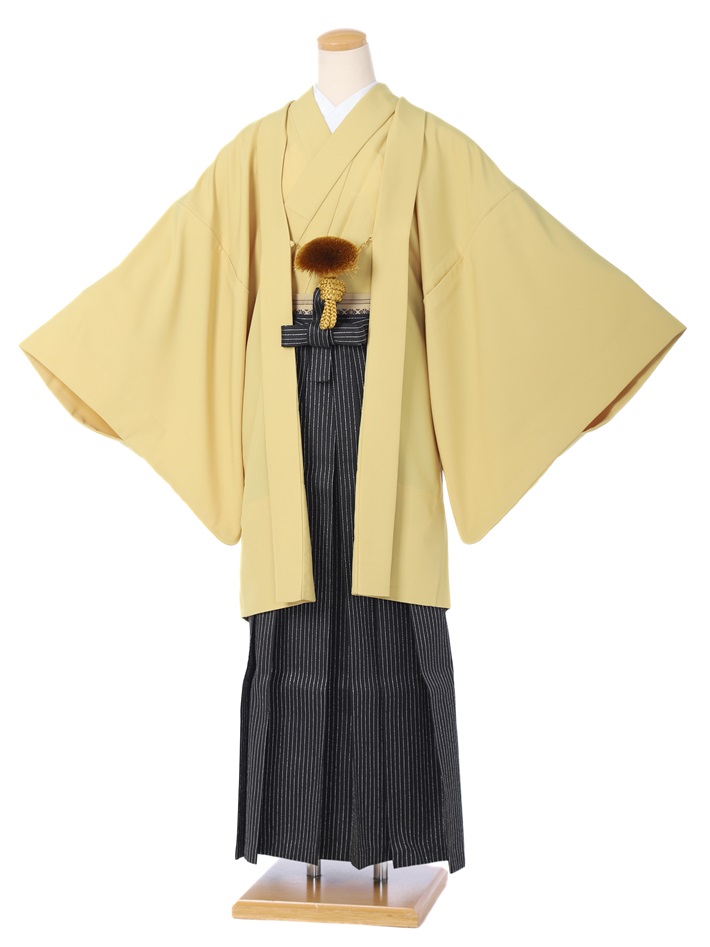 羽織袴 レンタル8AF38 紋付袴レンタル 男性 紳士 男 着物レンタル 着物 結婚式 卒業式 男袴 貸衣装 黒縞袴 カラシ色着物 168cm〜172cm位まで 爆買