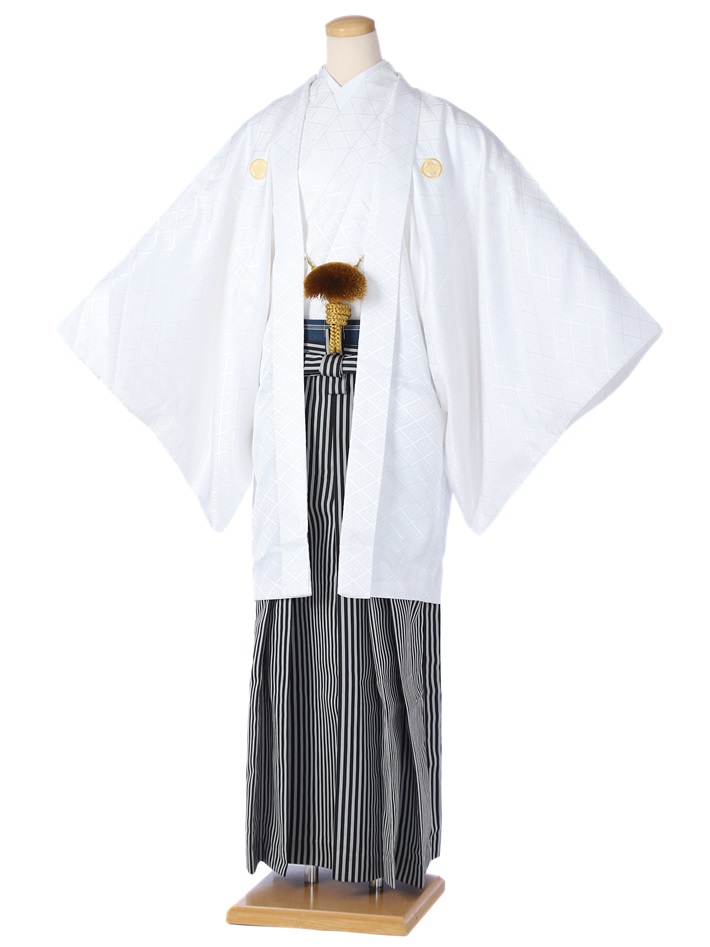 羽織袴 レンタル8AF44 紋付袴レンタル 男性 紳士 男 着物レンタル 着物 結婚式 卒業式 男袴 貸衣装 縞袴 白着物 168cm〜172cm位まで 爆買
