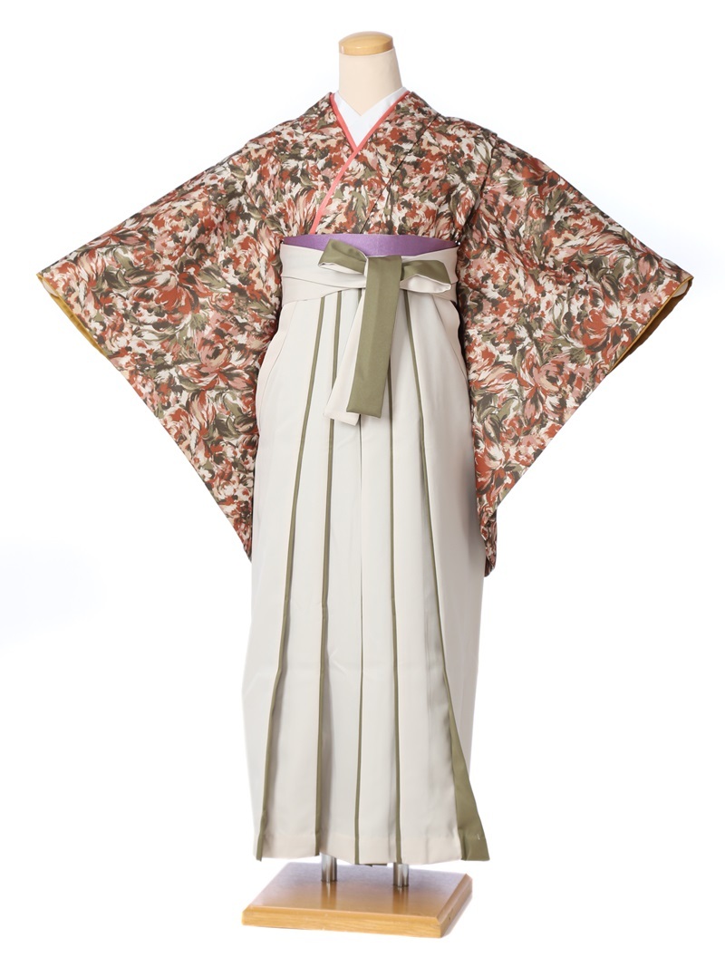 レンタル 袴 セット(AG132)大人 女 レディース 袴セット 卒業式 着物レンタル ハカマ はかま オレンジ オフホワイト袴 2尺袖 着物 卒業袴 フルセット レンタル【対応身長158〜163cm】足袋プレゼント 往復送料無料