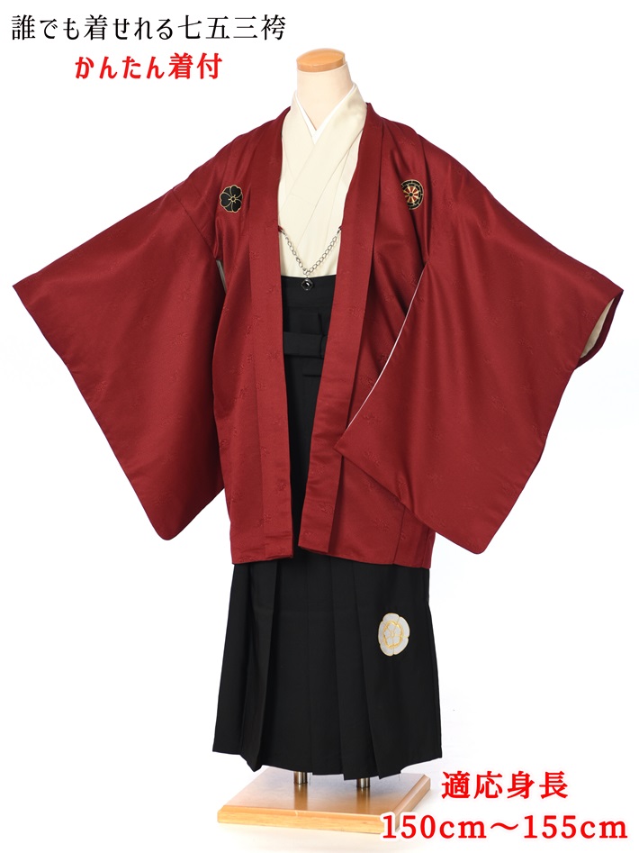 小学生 卒業式 男 ジュニア用紋付袴セットレンタル8AQL32 かんたん袴 紋付きフルセット 羽織袴レンタル 袴 男性着物レンタル 12歳〜13歳 十三参り 小学校卒業式 150cm〜155cm位まで 赤 黒袴 足袋プレゼント 往復送料無料