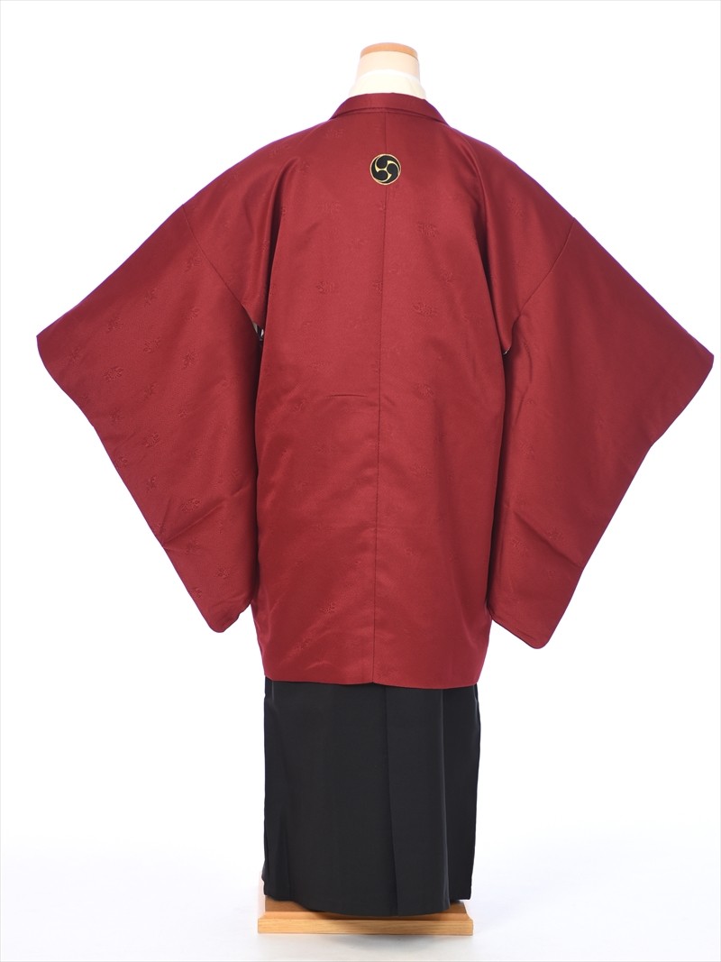 小学生 卒業式 男 ジュニア用紋付袴セットレンタル8AQL32 紋付きフルセット 羽織袴 12歳〜13歳 十三参り かんたん着付け 150cm〜155cm位まで 赤 黒袴 爆買
