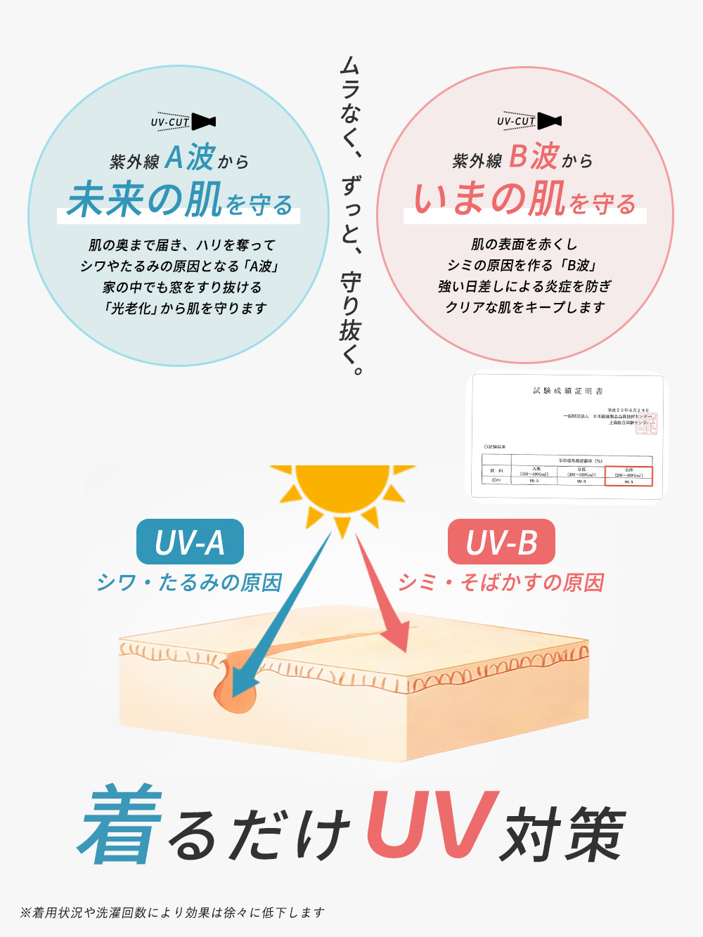 紫外線遮蔽率99%以上で、穿くだけで簡単に日焼け対策ができるのもポイントです。