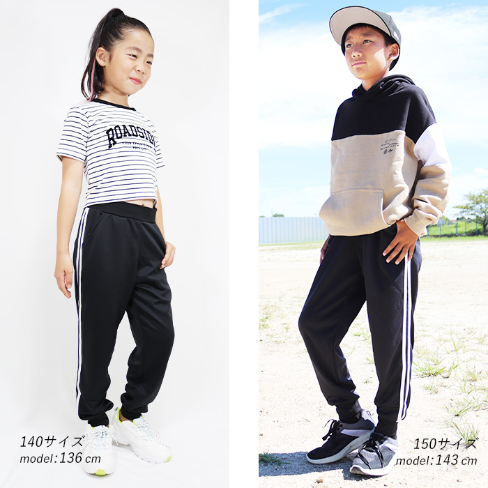 ジョガーパンツ 2本ライン キッズ ジュニア スポーツウェア ジャージ サイドライン 吸汗速乾 長ズボン 男の子 女の子 10分丈 *y3-1t