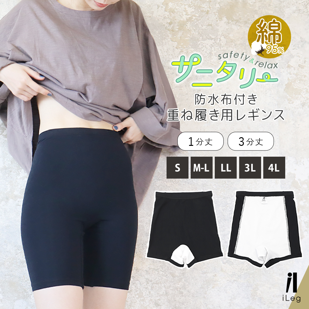 オリジナルだからできる幅広いサイズ展開で長くご愛用頂けるレギンスです。サニタリーショーツだけでは心配な時にご活用ください。