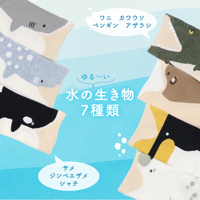 ゆる〜くデフォルメされた、水の生き物7種類からお選びください。