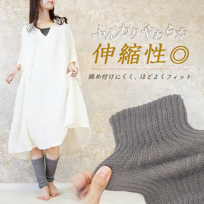 ◆特徴ふんわり柔らかく、独自の技術で編み立てた二重編みのレッグウォーマーです。