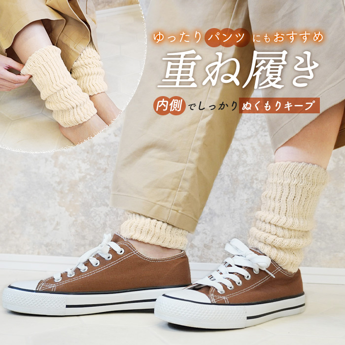 締めつけ感のないやさしいフィット感で、足首まわりをふんわり包み込み、冷えやすい足元をやさしくあたためます。