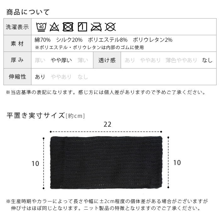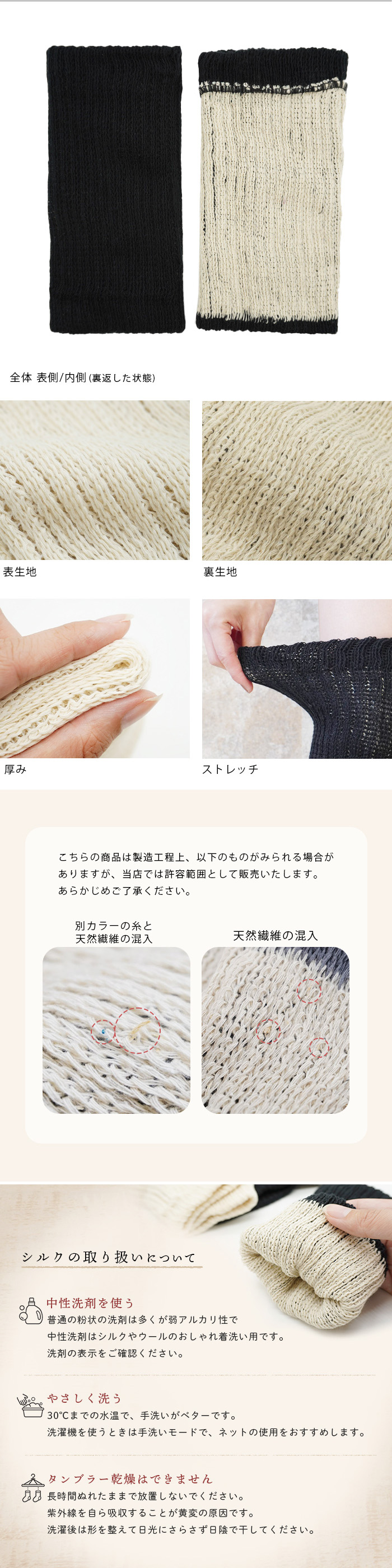 肌に触れる内側には、シルク50%・コットン50%の混紡糸を使用。