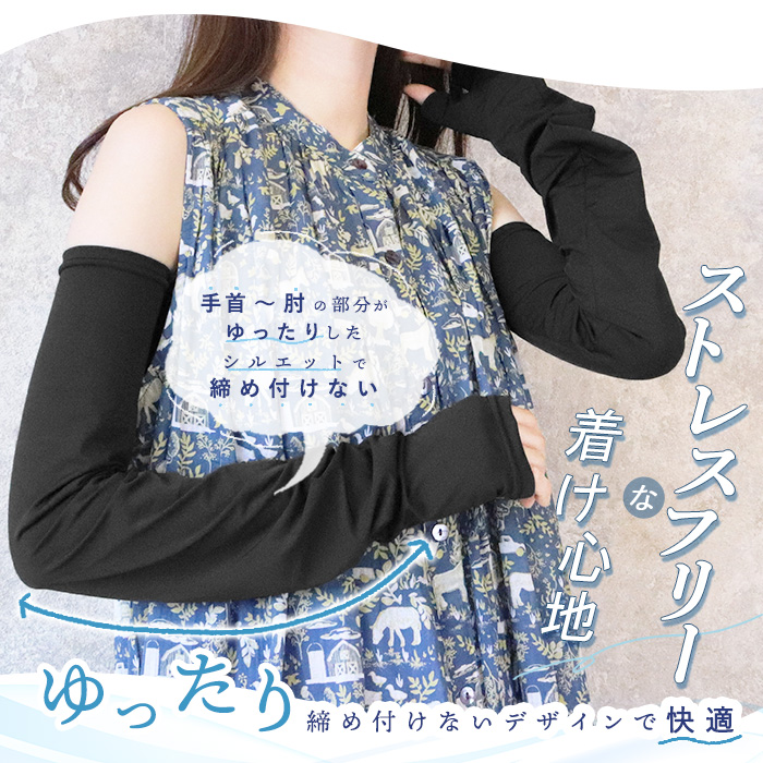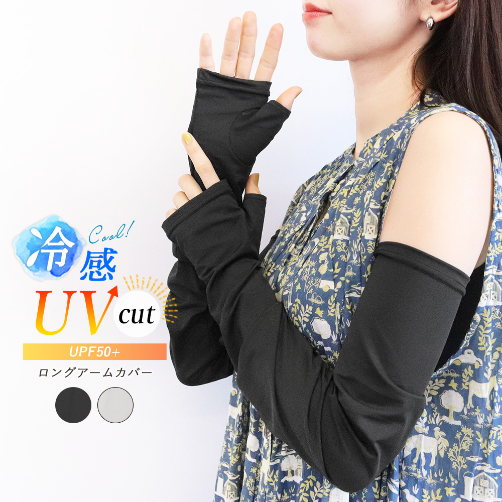 うれしい60cmのロング丈だから、コレ1枚で手の甲から二の腕までしっかりカバー。