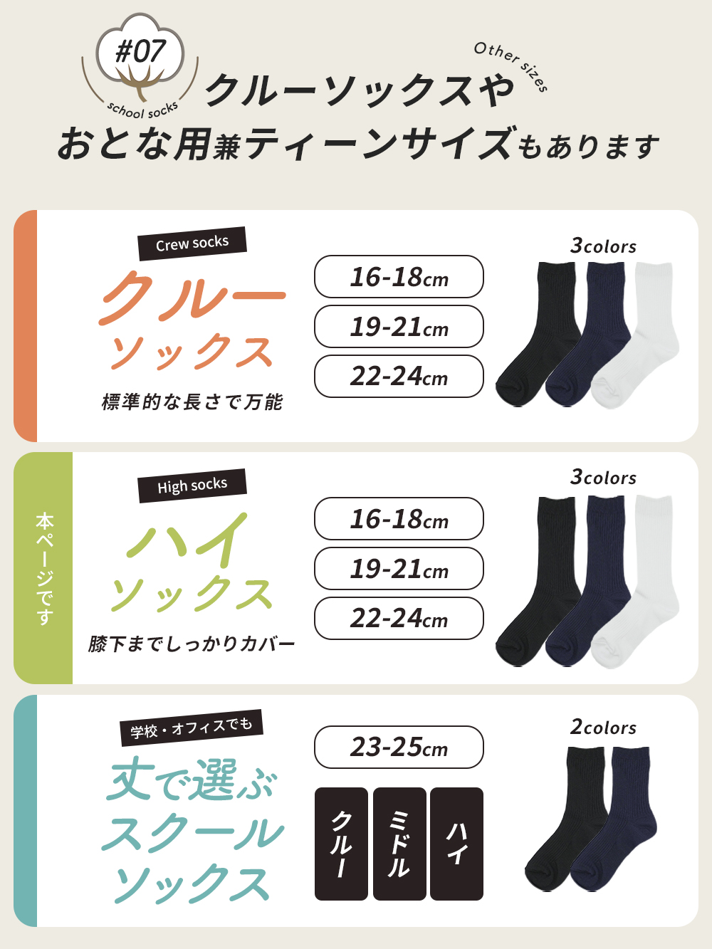クルーソックスはこちら 丈で選ぶベーシックソックスはこちら