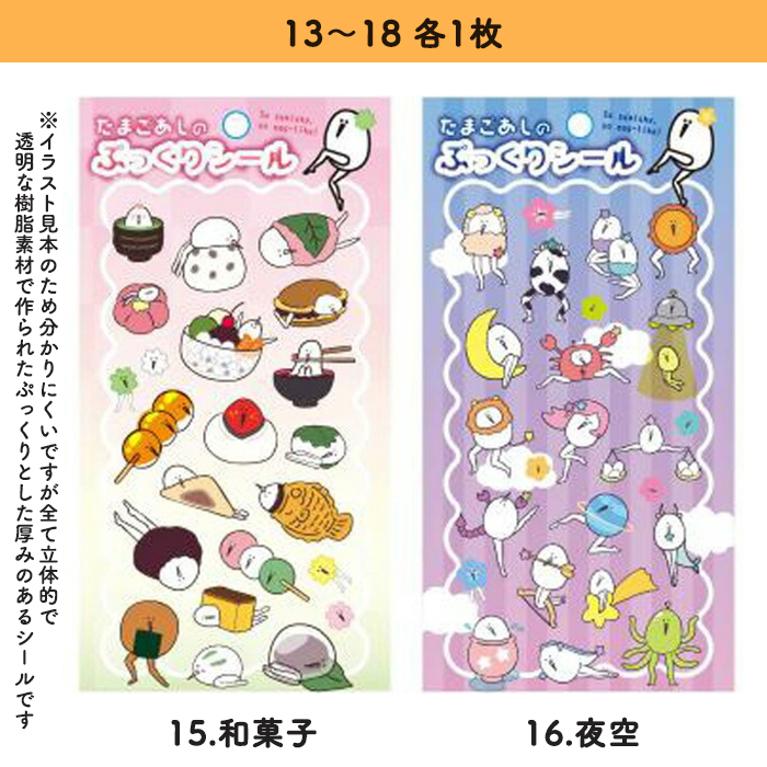 SNSや学校で話題沸騰中のぷくぷくシールから、シュールで可愛い「美脚の妖精たまごあし」のぷっくりシール6種類セットが登場です。