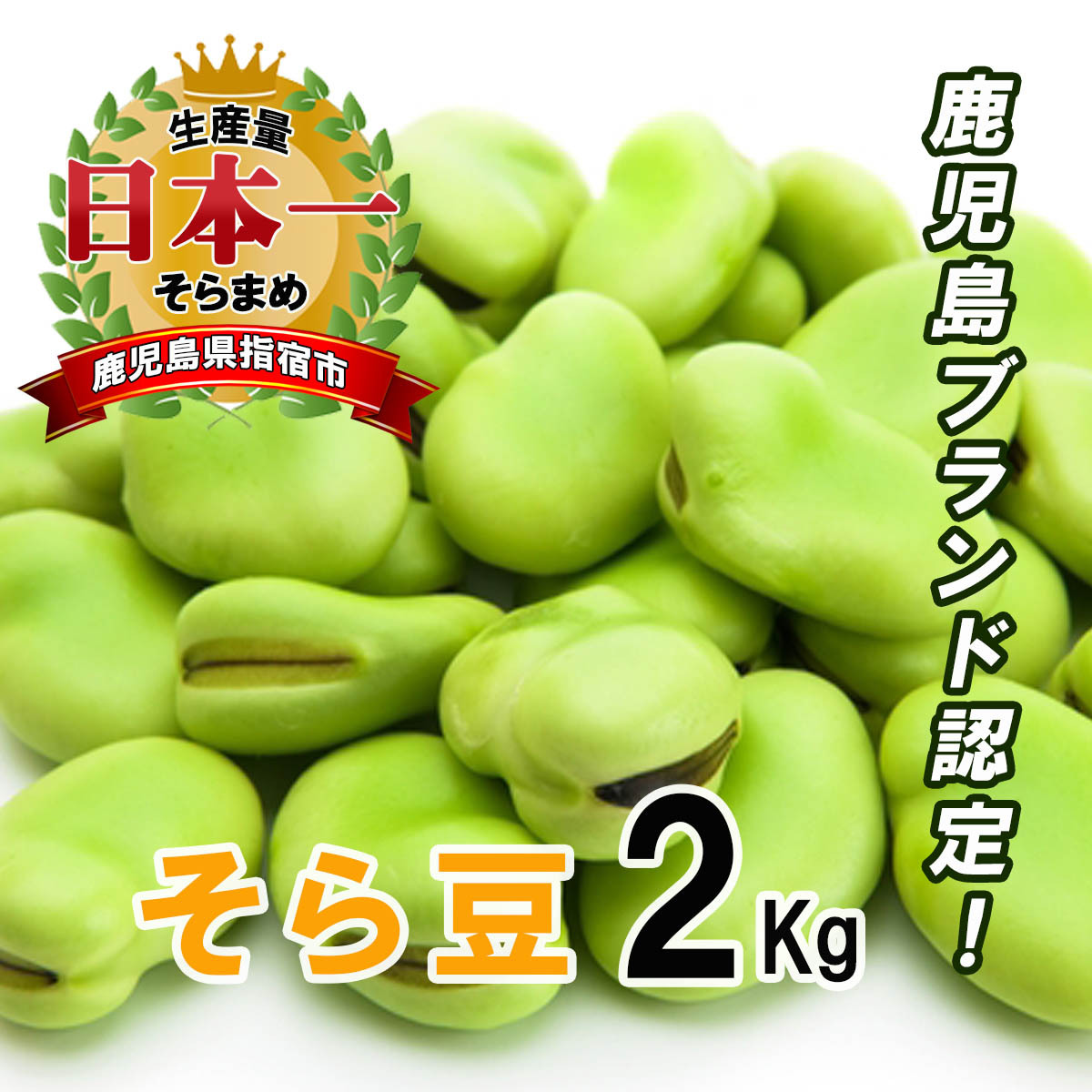 鹿児島県はそら豆の生産量が全国1位の県です。なかでも指宿産のそら豆は平成10年5月に「かごしまブランド」として認められた、品質・安全ともに高い水準のそら豆です。指宿の温暖な気候と豊かな自然に育まれた、新鮮なそら豆を是非ご賞味くださいませ。
