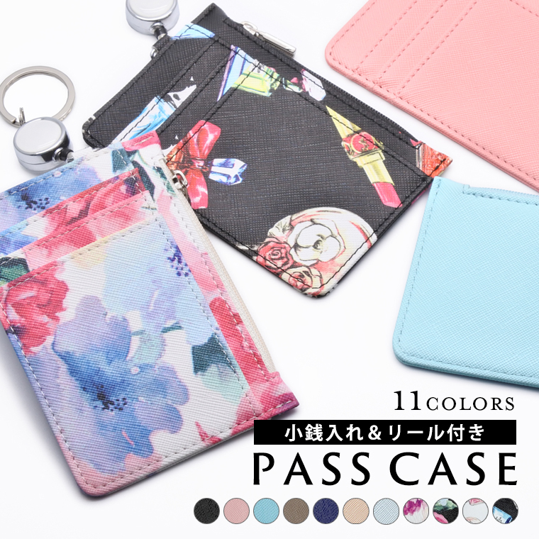 小銭入れ付き パスケース リール付き コインケース 4枚収納 キーリング IDカードホルダー IDカードケース 薄い レディース 定期入れ 20代 30代 かわいい