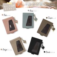 パスケース リール付き 横型 二つ折り バタフライ 2面式 レディース 本革 パスケース ICカード 定期入れ ストラップ付 薄い IDカードホルダー 20代 30代 40代