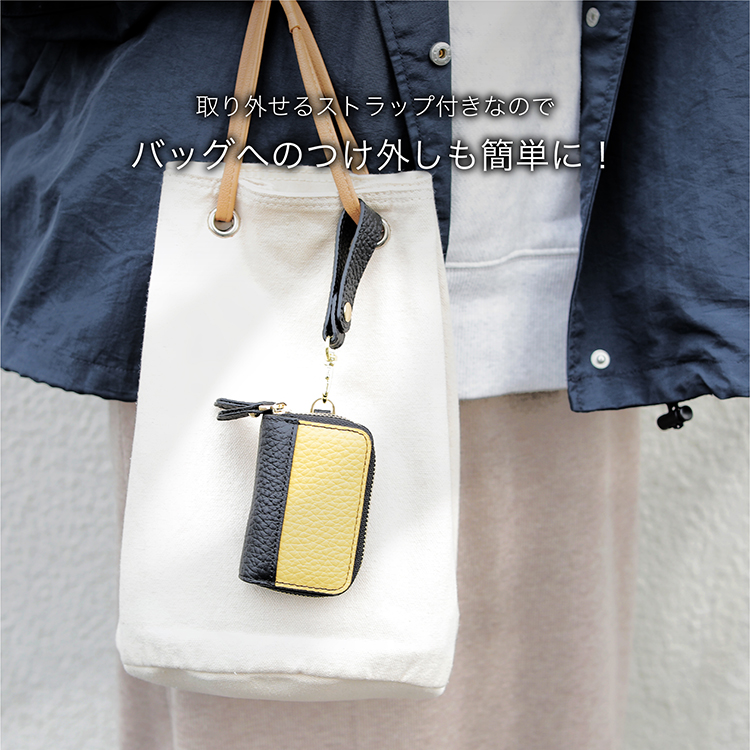 バイカラーでおしゃれ。コンパクトであらゆるシーンでスマートに使えるキーケースです。