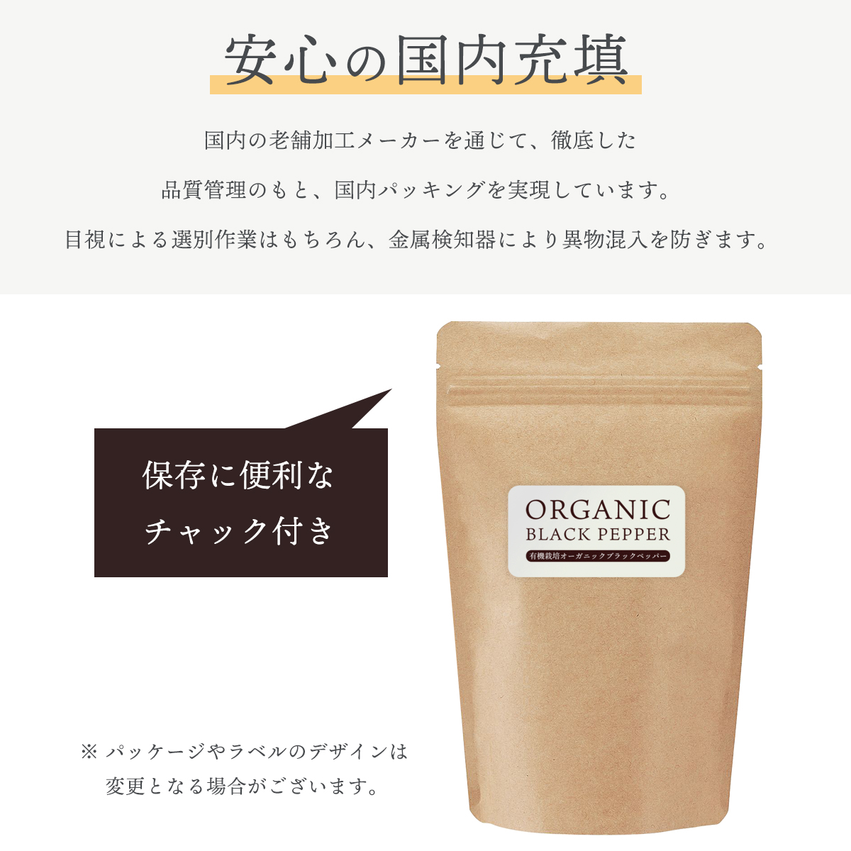 スリランカ産オーガニック黒胡椒100%使用。