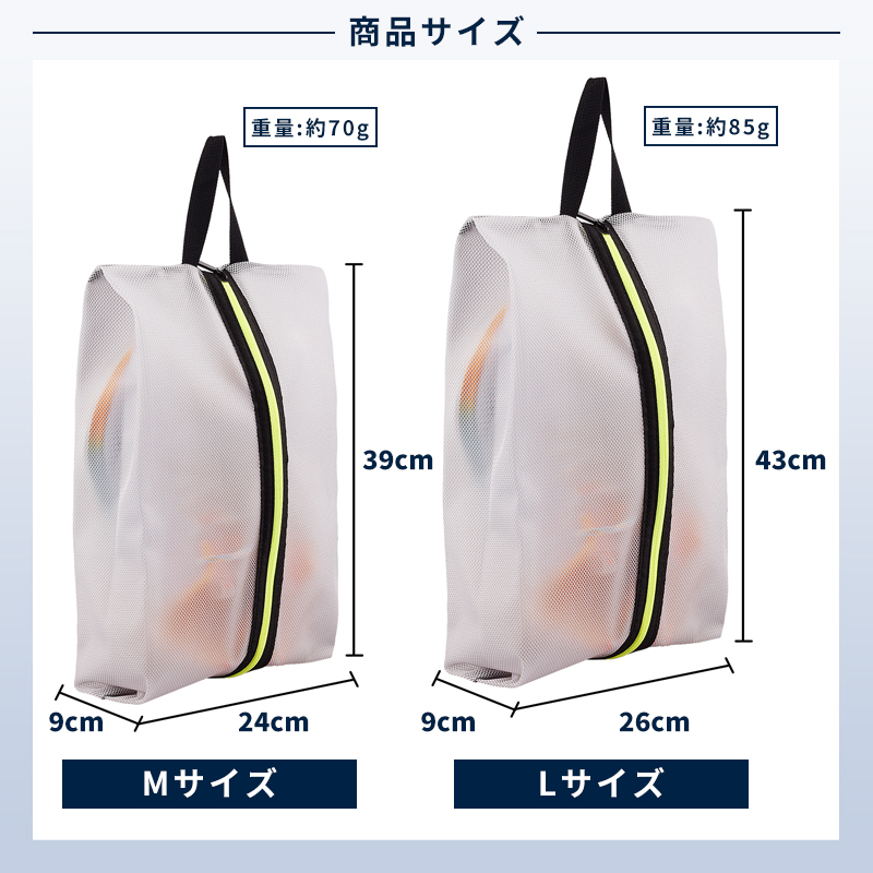Mサイズ:約39cm×約24cm×約9cm 重量:約70g
