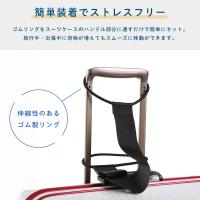 ゴムリングをスーツケースのハンドル部分に通すだけで簡単にセット。