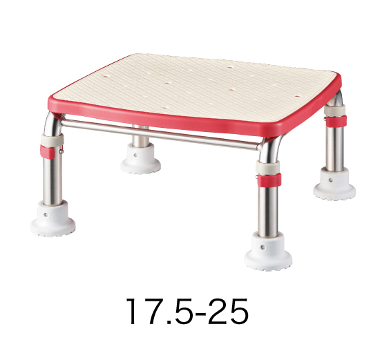 安寿 ステンレス製浴槽台R あしぴた(すべり止め座面・高さ17.5-25cm・天板ジャストサイズ)/レッド(アロン化成)536-496