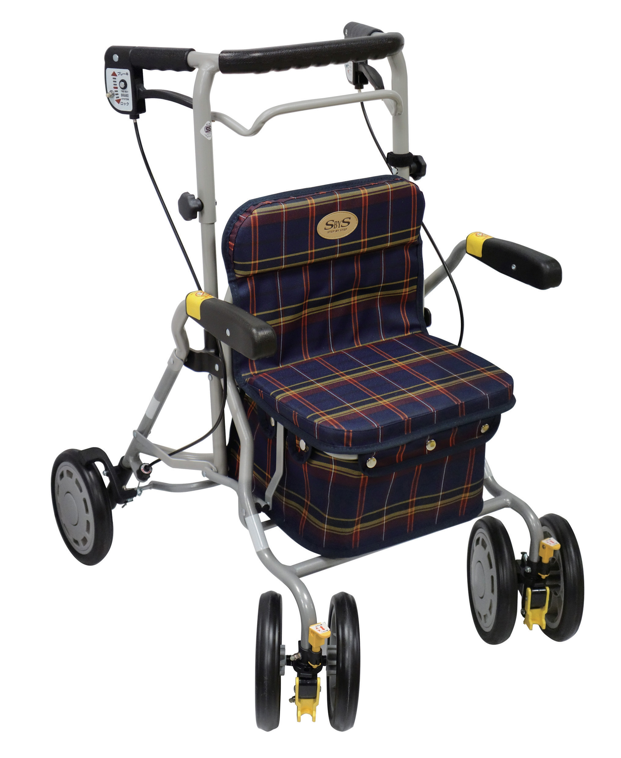 便利で多機能なBOXタイプの歩行車です。カゴを座面に載せることができ、バッグの載荷重は10kgと買い物にも便利です。
