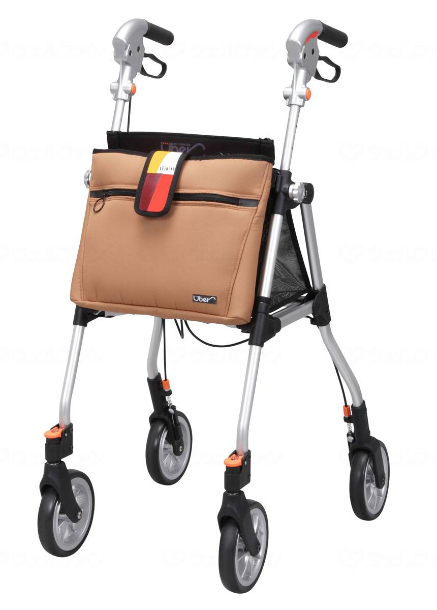 「スリムフィット(スタンダードサイズ)」は、通常ハンドルと後方転倒を防ぎやすいリーチハンドルのハンドル2Way切替可能なコンパクトな歩行車です。ハンドルの高さ80〜91cmで調節可能なスタンダードサイズ。