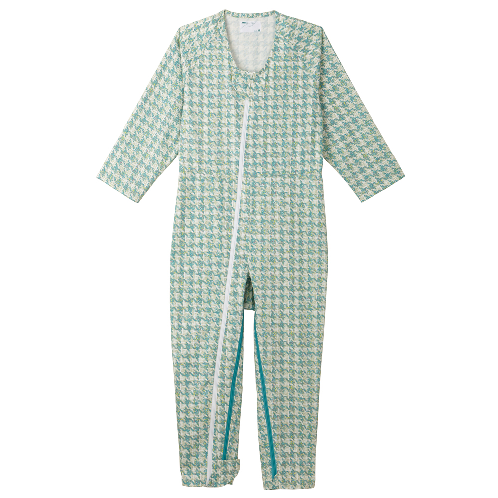 「コンビネーションII フルオープン型」は、オムツいじりなどの不都合な行為を予防する、つなぎタイプのねまきです。年間を通じてご利用いただけるオールシーズンタイプ。