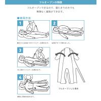 ●胸元から足首までのオープンファスナーで、寝たきりの方の着脱も無理なく行えます。