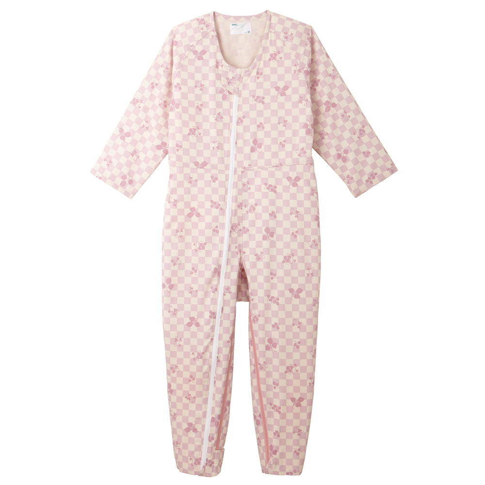 「コンビネーションII フルオープン型」は、オムツいじりなどの不都合な行為を予防する、つなぎタイプのねまきです。年間を通じてご利用いただけるオールシーズンタイプ。