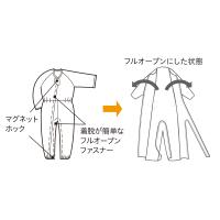 ●胸元から足首までのオープンファスナーで、寝たきりの方の着脱も無理なく行えます。