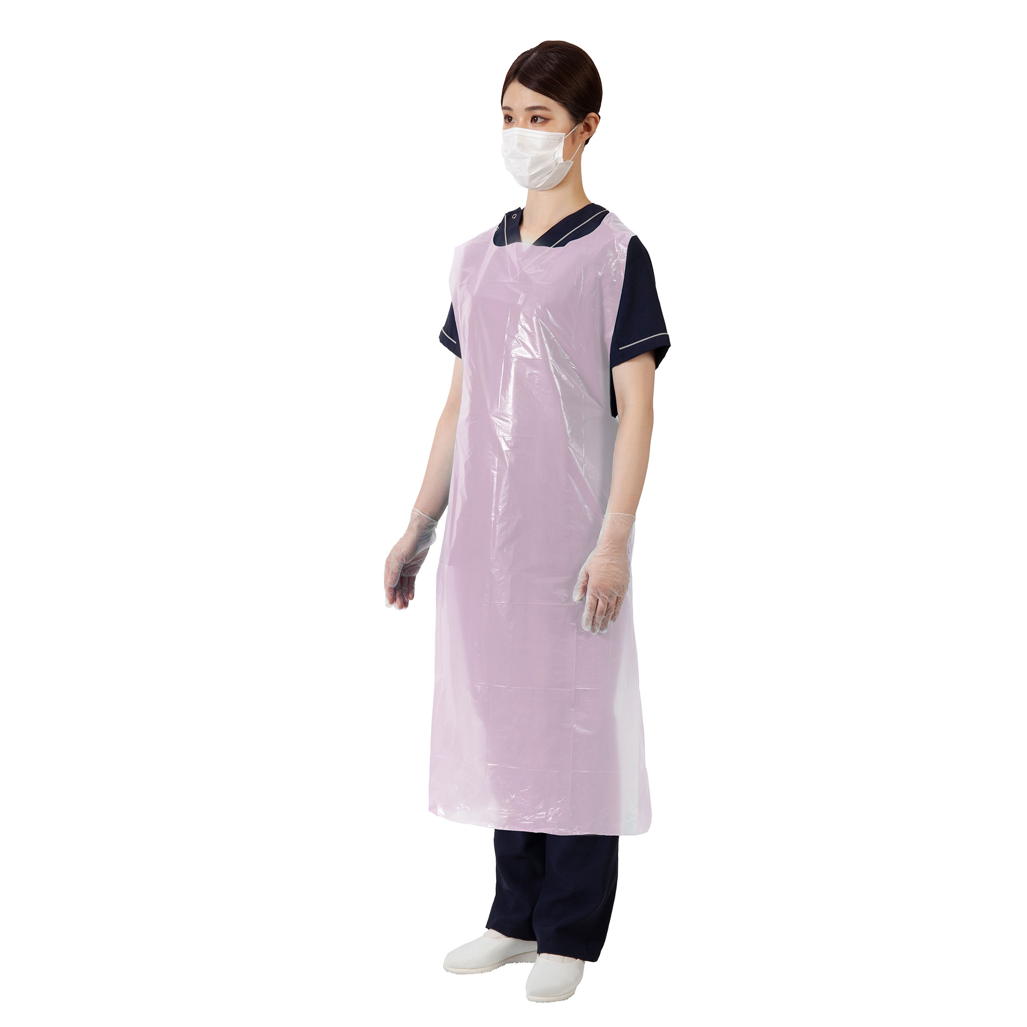 ビニールエプロンP 50枚入/ピンク(竹虎)076357 袖なし使い捨てエプロン