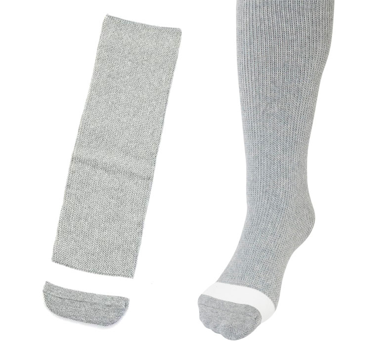 「あゆみが作った靴下 名前が書けるのびのびII」は、優しく伸びてしめつけない、ギプスの上からも履くことができる靴下です。縫い目がないので、デリケートなお肌にもやさしい仕様になっています。