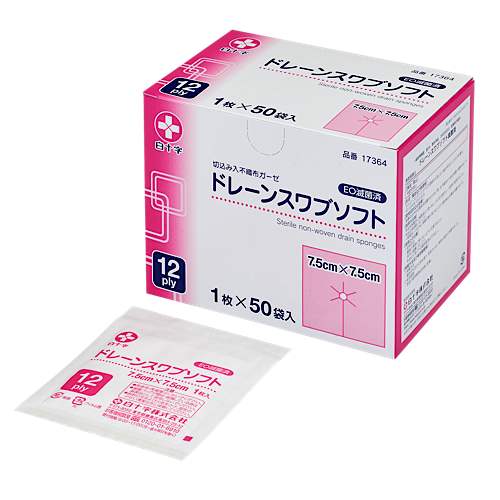 ドレーンスワブソフト 7.5×7.5 滅菌済/1枚×50袋(白十字)医療用不織布切込み入 17364