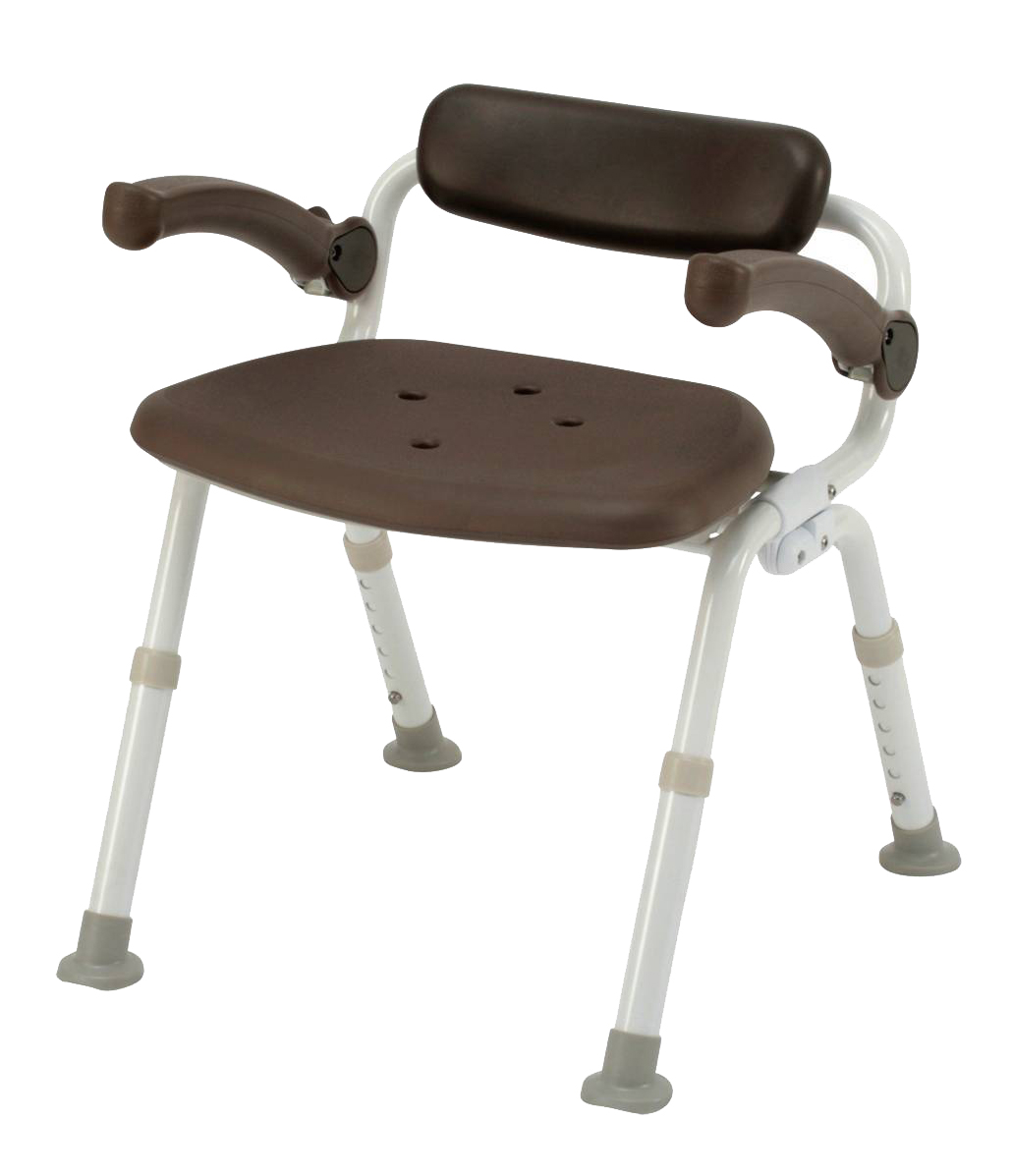 ●ひじかけの裏までやわらかな素材。浴槽への移乗時に誤ってひじをぶつけても安全。