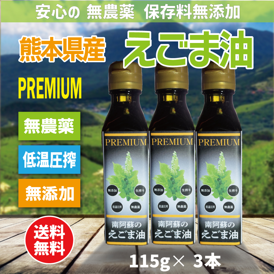 えごま油 国産 無農薬 低温圧搾 無添加 熊本県南阿蘇産 110g 3本 プレミアム仕様