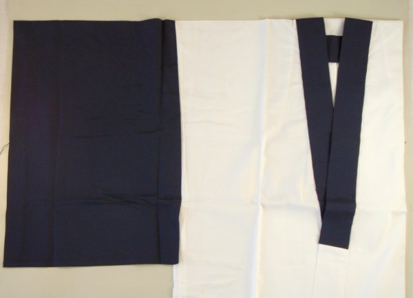衿と袖は同色濃紺、身頃は晒