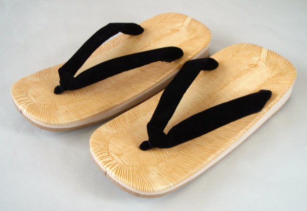 通常雪駄は、皮底でかかとが木製で鋲打ちで、シャンシャンと音がして粋ですが。アスファルト、石畳等の固い地面で滑りやすく、室内だと床に傷が付きやすい。この雪駄は底がスポンジゴム底で、履きやすく、疲れにくい。