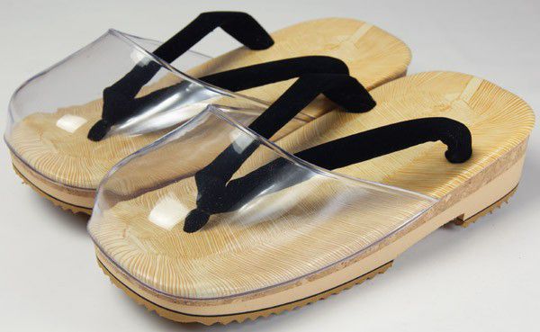 雨、雪でも足袋が汚れにくい透明カバー付、通常の雪駄よりかかとが高い