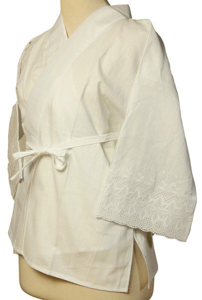 襦袢を着ているように半衿が見えるバチ衿が付いて襦袢を兼ねた肌着です、袖口にはレース付。