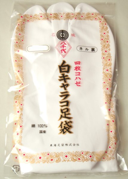 高級キャラコ足袋 ネル裏 白 四枚こはぜ 22.5cm〜24.5cmまで