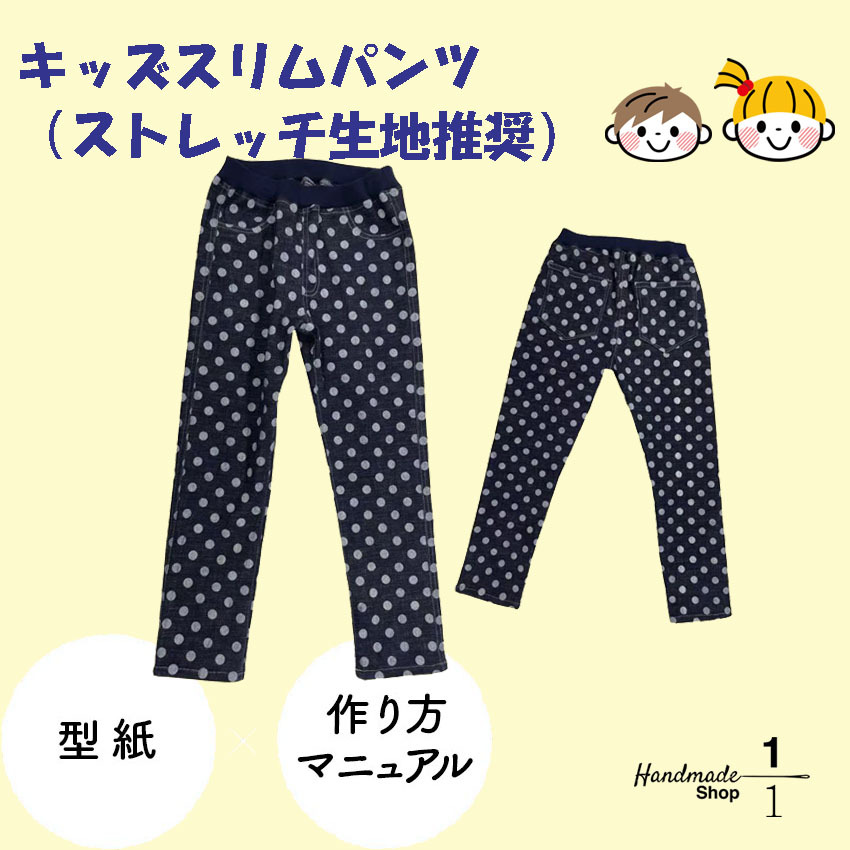 型紙 縫い代付き スリムパンツ 子供用 今だけウエストリブプレゼント! 子供 こども キッズ