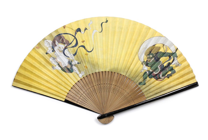 日本の絵画の代表作の一つ、琳派の風神雷神図をモチーフにした京扇子。