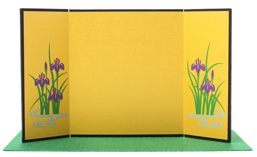菖蒲屏風 三つ折り 136mm×242mm 屏風 金屏風 びょうぶ 衝立 雛人形 五月人形 四曲屏風 人形