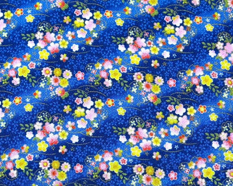 柄ちりめん 青系 3003 金入 ななめ ぼかし 花柄 ちりめん 生地 はぎれ カット
