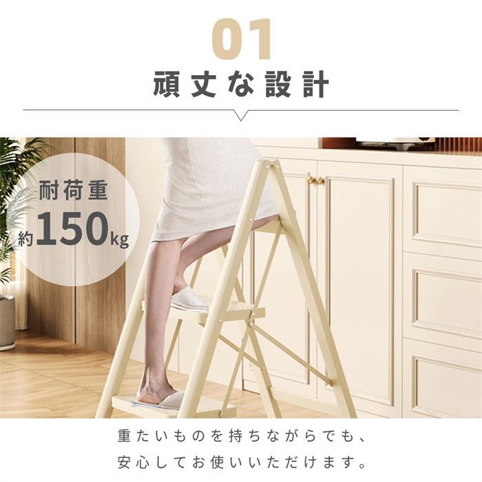 脚立 踏み台 3段 4段 耐荷重150kg おしゃれ 軽量 折りたたみ 滑り止め加工 コンパクト ステップチェア ステップ台 はしご 掃除 家庭用