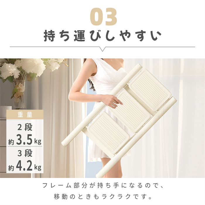 本体重量:3段→約3.5kg / 4段→約4.2kg → 女性でも楽々持ち運び!
