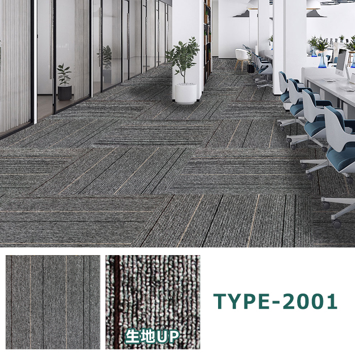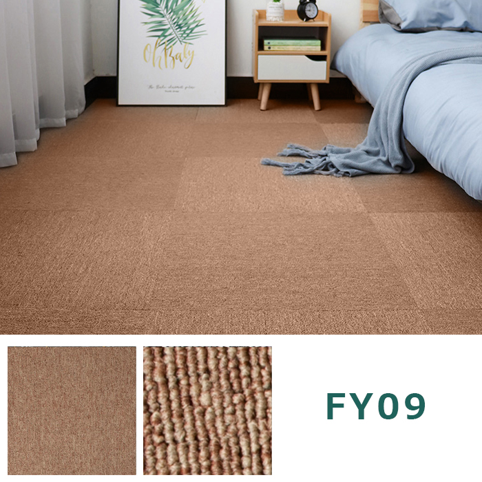 カーペットタイルの表面は100%ポリプロピレン製 、高密度で伸縮性,耐汚染性、耐摩耗性、耐湿気。クッション性も高めて、床への衝撃を吸収するため、階下の遮音やオフィスの革靴やビールの足音にも効果的です。
