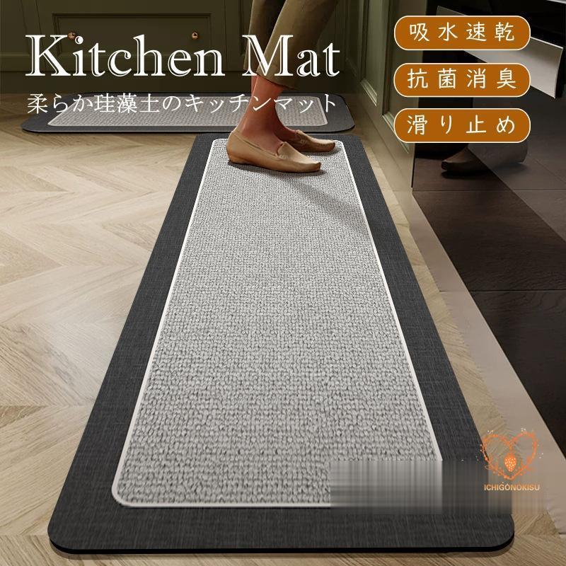 キッチンマット 珪藻土 ソフト おしゃれ 柔らかい 吸水 速乾 防汚 抗菌 消臭 アスベスト不使用 滑り止め 天然素材 大判 新生活 床暖房対応 防ダニ 北欧 洗える