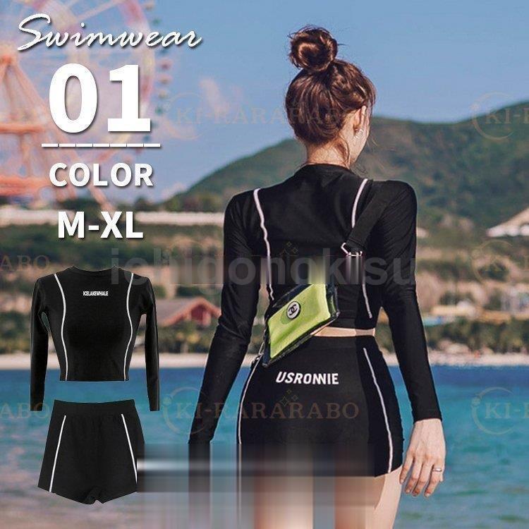【商品名】 ラッシュガード レディース 上下セット 水着 体型カバー 長袖 大きいサイズ おしゃれ ショートパンツ ウェットスーツ フィットネス セパレート UV オトナ女子 ガールズ ママ シンプル サーフィン シュノーケリング ダイビング マリンスポーツ 黒