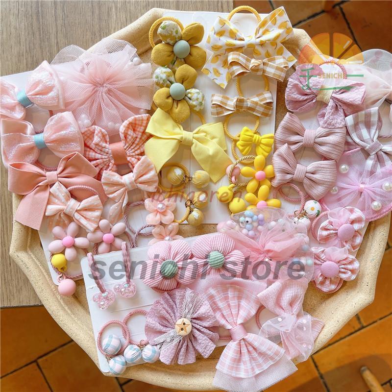 リボンやフラワーモチーフの可愛いデザイン・10本の子供用ヘアゴムセットです。