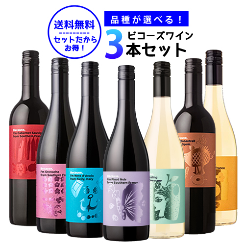 Because 品種が選べるビコーズワイン 飲み比べ3本セット【送料無料(一部地域除く)】750ml×3本